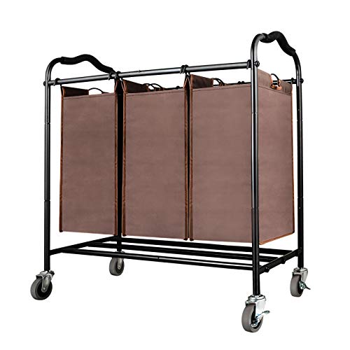 Buy 1 get 1 Nicesail 3 Section Laundry Sorter Cart in Brown-3 Removable Waterproof Oxford Bags with Lockable Wheels and Metal Frame,